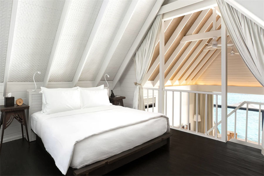 房型介绍:我们的多尼船式带阁楼水上别墅形如一艘传统多尼渔船,配有宽敞的一层起居区和夹楼主卧室,非常适合家庭居住该设计旨在将室外空间与室内空间打通,您可以通过落地窗俯瞰海面,还可以通过私人露台直接触摸海洋。