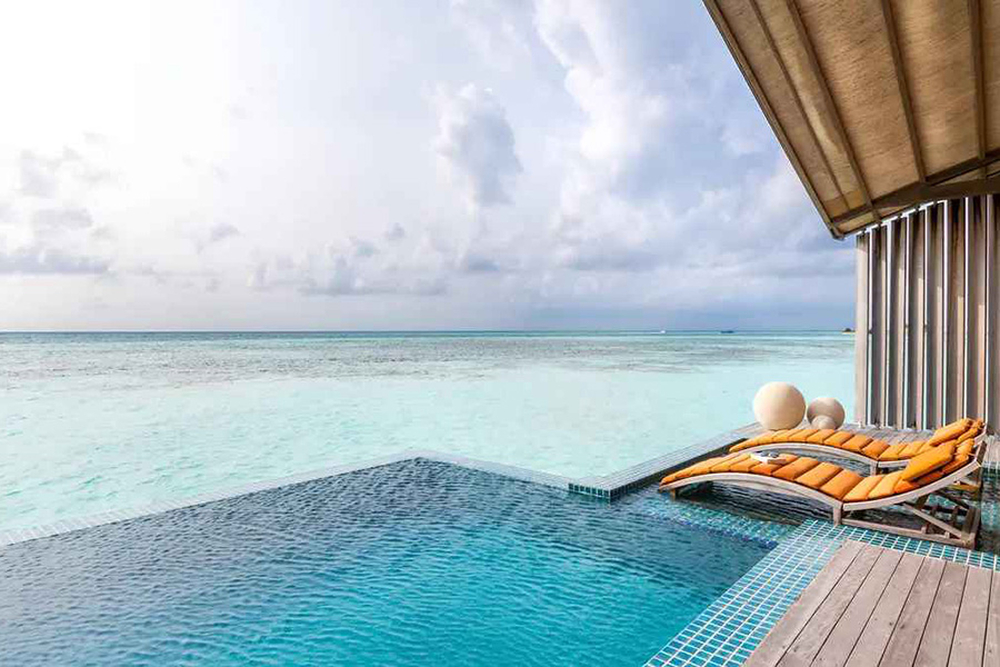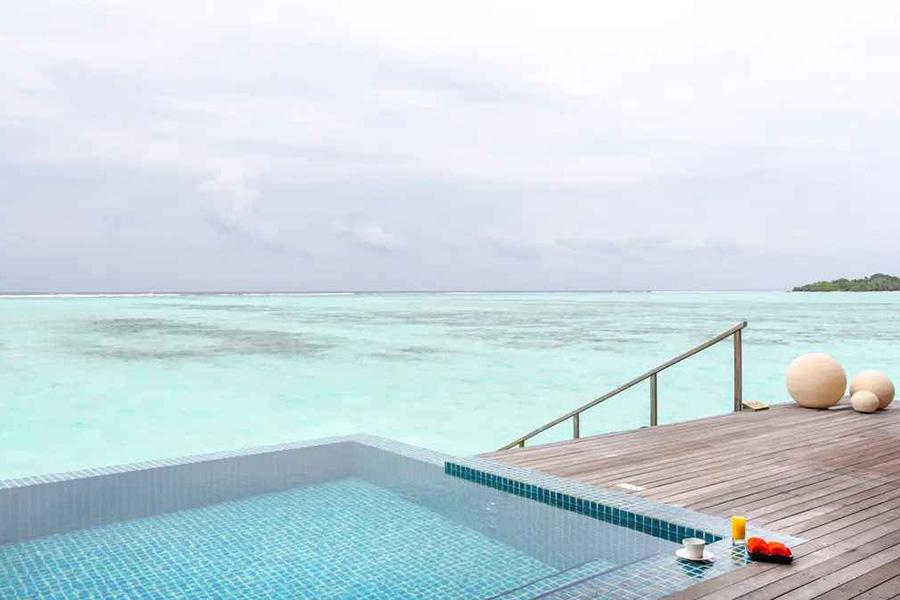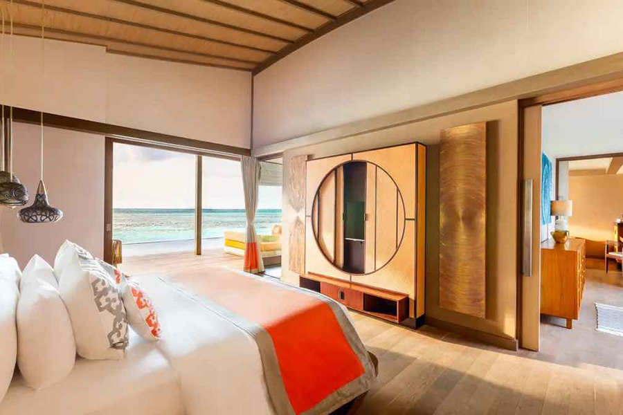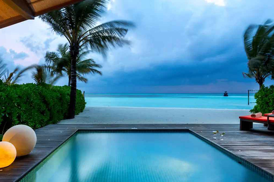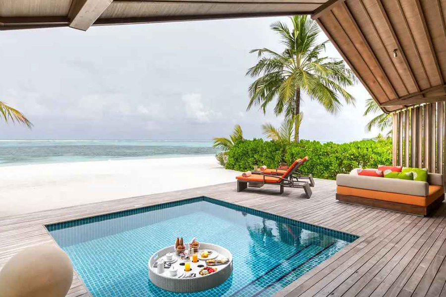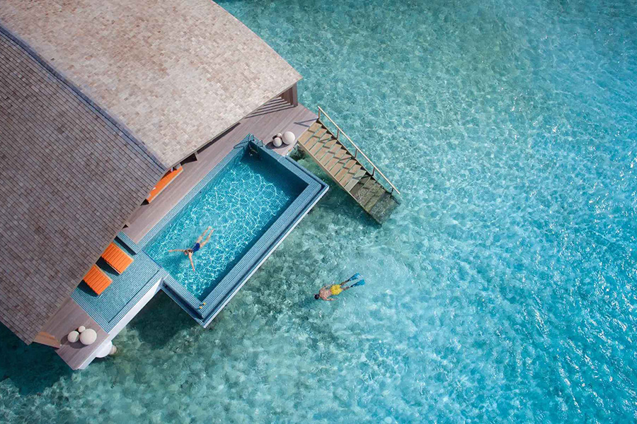 房型介绍:当太阳升起时,听到泻湖在呼唤你。从别墅低调、色彩鲜艳的舒适环境中,您可以看到自己的游泳池。能直接在泳池内看到日出的场景,入住日出海滩别墅的儿童最低年龄:12岁