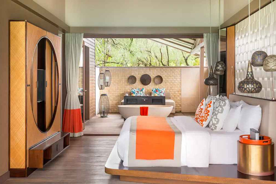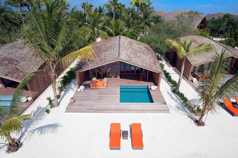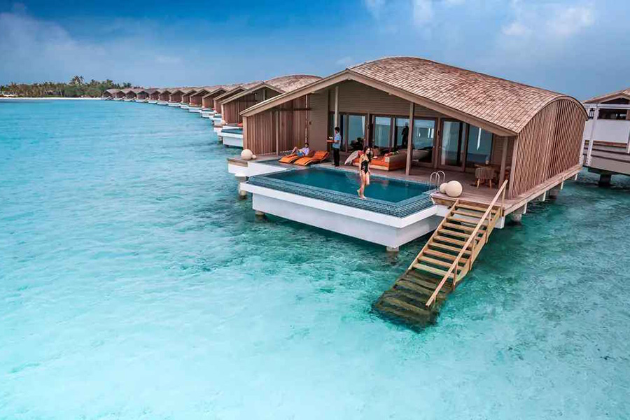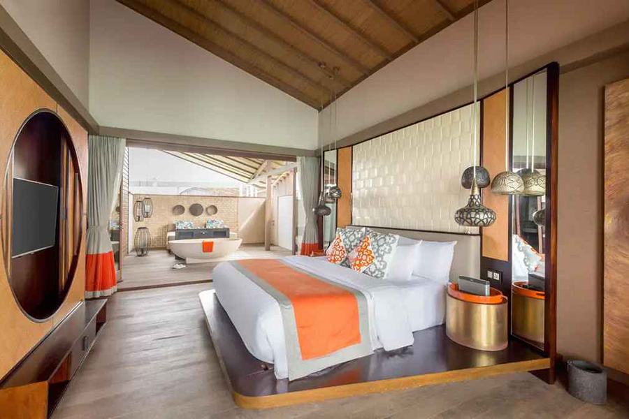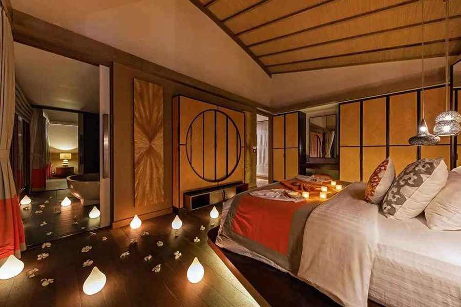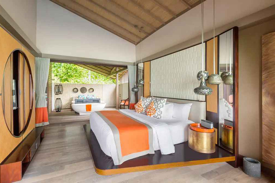 房型介绍:当太阳升起时,听到泻湖在呼唤你。从别墅低调、色彩鲜艳的舒适环境中,您可以看到自己的游泳池。能直接在泳池内看到日出的场景,入住日出海滩别墅的儿童最低年龄:12岁