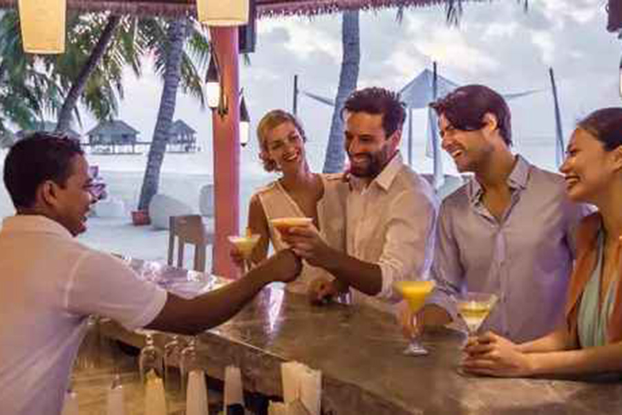 酒吧介绍:无论是白天喝一杯清凉的酒,还是在傍晚来临时喝一杯放松的饮料,都可以从这个令人放松的休憩中欣赏马尔代夫高跷水上别墅和波光粼粼的泻湖的壮丽景色。