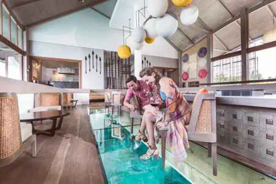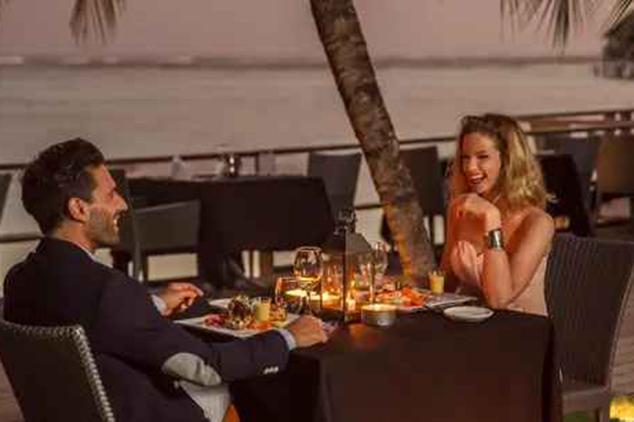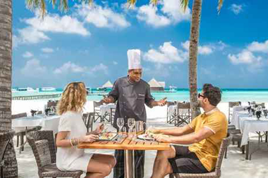 餐厅介绍: 马尔代夫拥有田园诗般的环境,俯瞰印度洋波光粼粼的海水,度蜜月的人将享受真正难忘的浪漫用餐体验。Motu 厨师准备了一系列充满灵感的国际美食创意,这些创意每天都在变化,以诱惑每个人的味蕾。餐厅白天提供休闲的环境,晚上提供精致的用餐环境,其中央酒吧通过特殊的玻璃地板提供通往下方海洋世界的窗户。无论是在两间优雅的餐厅中,一间享受凉爽的空调,还是在悬挂在海洋上的风景优美的露台上,在这里用餐一定会让您感到愉悦。