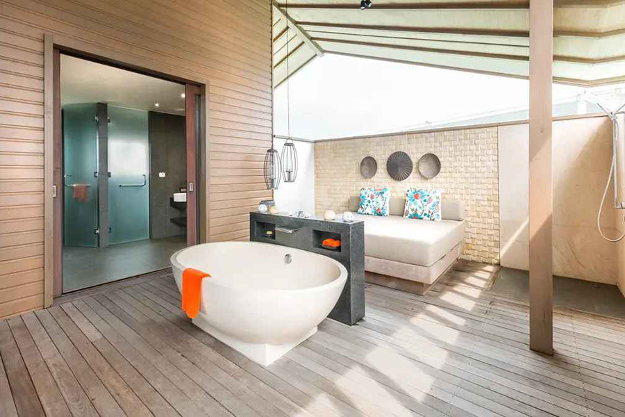 房型介绍:这栋别墅拥有龟壳形状的屋顶和木制楼梯,可直接进入碧绿的大海,让您充满想象力。装饰低调而现代,与外面的自然环境相得益彰。入住水上别墅的儿童的最低年龄:18岁。